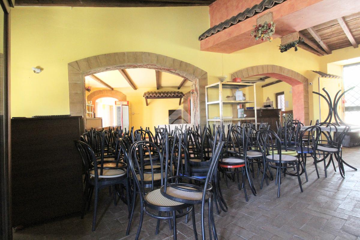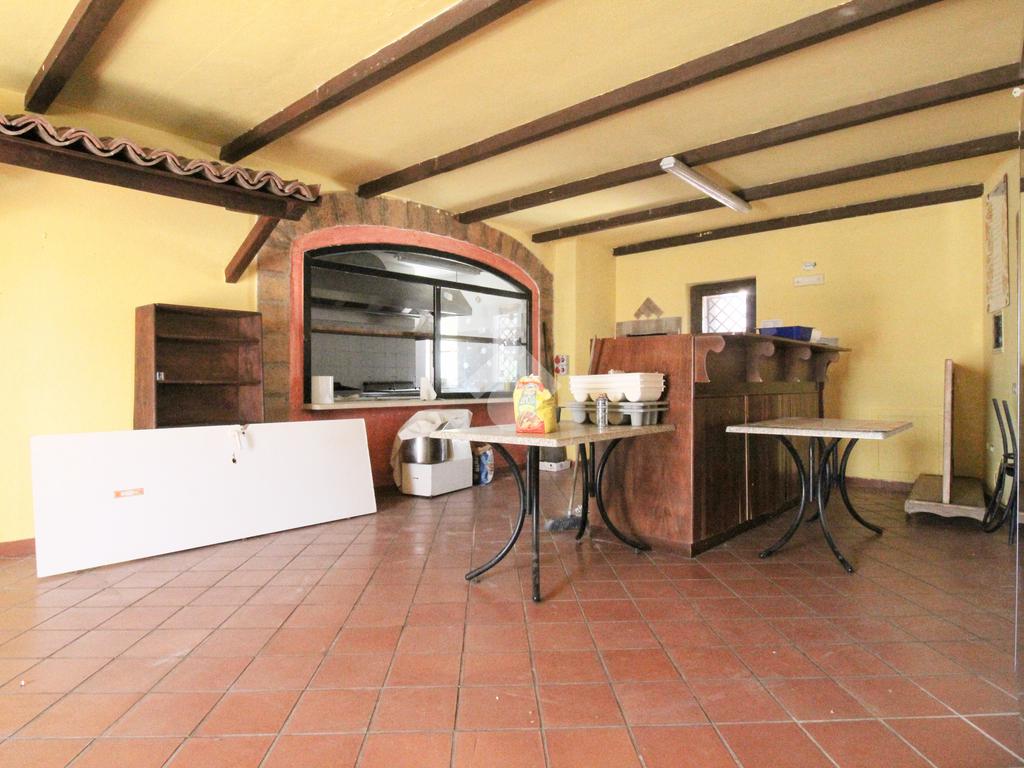 L'immobile, sviluppato principalmente al primo piano,oltre a circa 80 mq di veranda coperta, si compone di una sala principale spaziosa , una zona bar, cucina attrezzabile di generose dimensioni e servizi per il pubblico.